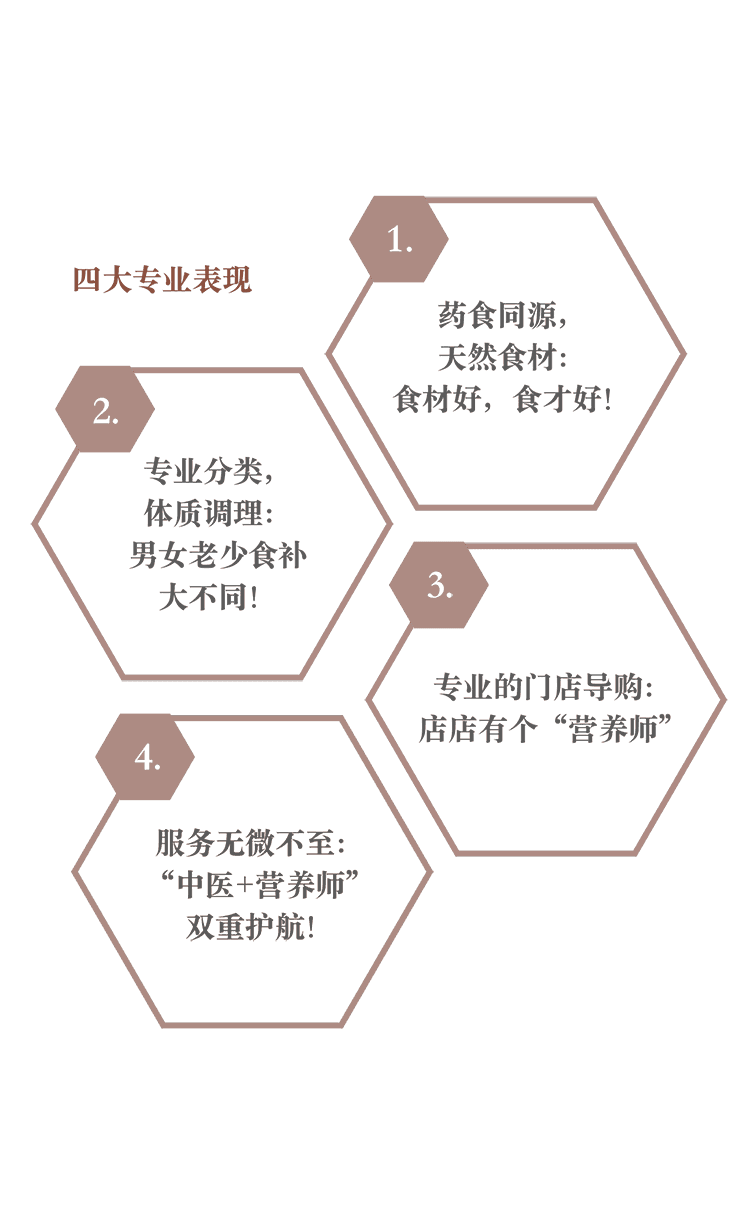 涵盖食补汤料、食补全谷粉、食补膏方、养生花茶、特色养生酒等系列食补产品。